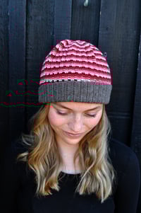 Lækker hue med striber inspireret at traditionelle Bargello mønstre.