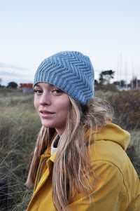 How it’s made: The beanie is crocheted from the side seam and around the head in rows. In the top of the hat turning rows gives a good shape.